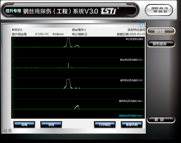 TST黄瓜视频成人在线观看探伤(工程)系统是一种针对各种工况提升黄瓜视频成人在线观看的损伤现象实时在线无损探伤的工程设备系统。该系统以“KJ578煤矿用黄瓜视频成人在线观看探伤系统”为硬件平台,搭载“TST黄瓜视频成人在线观看探伤(工程)系统V4.0”专业分析软件,采用“变量补偿传感器”、“三维磁感应桥”和“自平衡同步励磁”等无损探伤专利技术综合集成可全天候无人值守在线实时探测黄瓜视频成人在线观看内外部断丝、锈蚀、疲劳、磨损及变形等各种损伤隐患,通过LMA曲线分析,评估黄瓜视频成人在线观看的使用寿命。